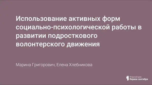 Использование активных форм социально-психологической работы в развитии подросткового волонтерского движения