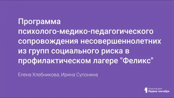 Программа психолого-медико-педагогического сопровождения несовершеннолетних из групп социального риска в профилактическом лагере "Феликс"