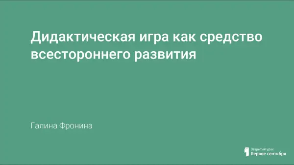 Игра является неотъемлемой частью обучения, которое протекает наиболее успешно, когда используются специальные дидактические игры, во время которых дети усваивают доступные им сведения и умения. Дидактические игры способствуют развитию психических процессов. В игре ребенок научается действовать в познаваемой, т.е. в мысленной, а не видимой ситуации, опираясь на внутренние тенденции и мотивы, а не на мотивы и побуждения, которые идут от вещи. На каждом возрастном этапе развития ребенка, дидактические игры меняются, но все они направлены на развития, памяти, мышления, воображения, дидактические игры учат также детей играть по правилам, содержит игровой замысел.
