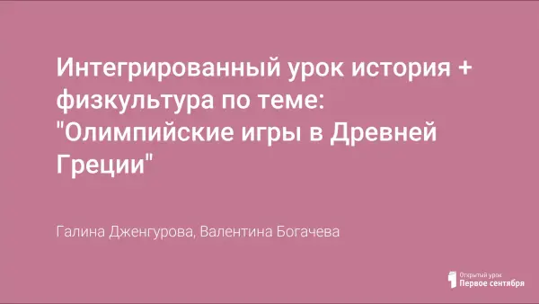 Интегрированный урок (история + физкультура) в 5-м классе - одна из форм обучения зарубежной истории, которую можно успешно применять учителем в условиях концентрической структуры школьного исторического образования.
