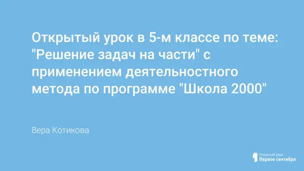 Данный урок – урок открытия новых знаний. На уроке рассматривается решение трех основных задач на части: нахождение одной величины через другую, нахождение двух величин через их сумму, нахождение двух величин через их разность, вырабатывается алгоритм решения таких задач. Акцентируется важность таких задач на практике. Поддерживается настроение успеха.