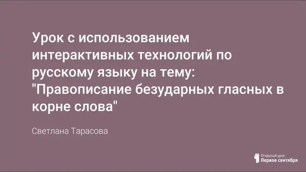 Главное внимание на уроке уделено этапу формирования умения рассуждать, опираясь на правило проверки безударных гласных. Сам урок составлен с использованием интерактивных технологий, а подобранный материал рассчитан для учащихся начальных классов. Но структура урока может быть использована учителями и для учащихся среднего звена школы.