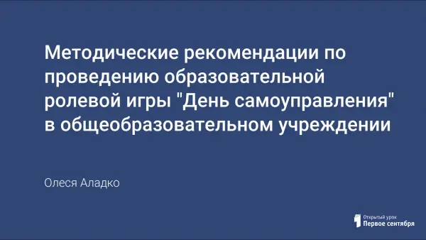 В данной статье представлены методические рекомендации о том, как провести качественный, продуктивный, полноценный учебный день, не смотря на то, что учителями станут сами дети. Успех игры во многом зависит от ее подготовки, которая начинается задолго до обозначенного дня. Четкий алгоритм действий поможет учащимся организовать данный день при дружеской поддержке и доверии педагогов. В статье представлен полный комплект документов, необходимых в ходе реализации игры.