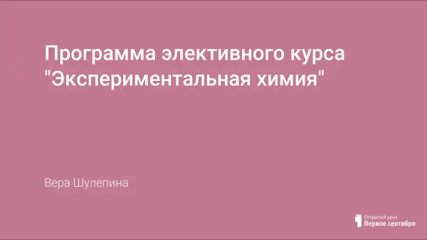 Элективный курс по экспериментальной химии для 9-х классов естественного цикла содержит программу, тематическое планирование, предоставляет учителю широкий выбор в творческом проведении уроков.