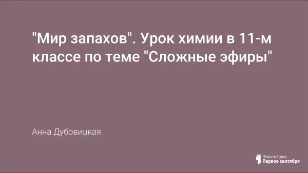 Мастерская построения знаний "Мир запахов" по теме "Сложные эфиры" способствует развитию творческой деятельности, повышению уровня самостоятельности, познавательной активности. Урок с практической направленностью совершенствует исследовательские навыки учащихся.