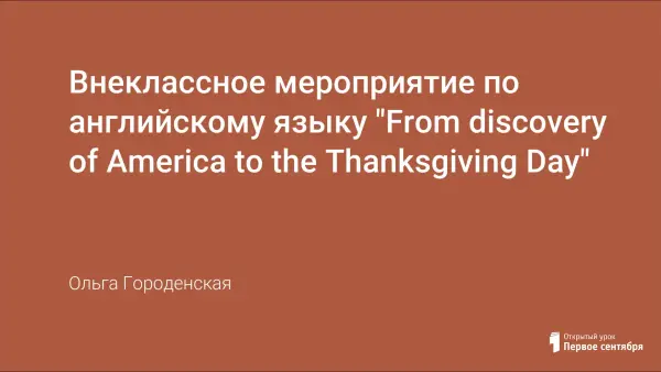 Сценарий дает возможность «в лицах» проиграть эпизоды из ранней истории Америки. Цели мероприятия – расширить знания по страноведению (знакомство с историческими реалиями – переговоры Колумба при испанском дворе, отцы-пилигримы в Америке, Мэйфлауэрское соглашение), тренировать умения в разговорной практике, на речевом материале раскрыть драматизм судьбы Колумба и пример редкого в ранней истории Америки мирного сосуществования культур, основанного на уважении и соблюдении законов (первые колонисты Новой Англии и коренные жители Америки).
