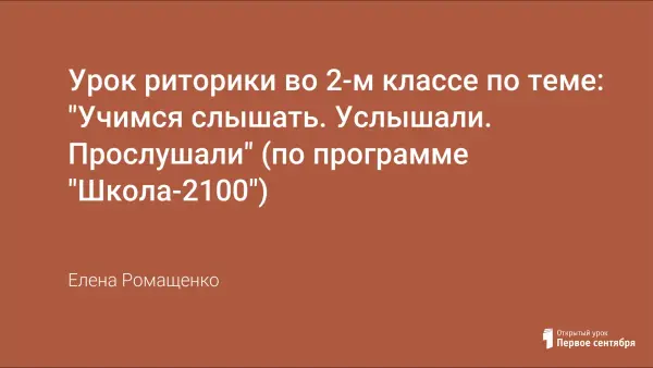 Основной задачей уроков риторики в начальной школе является развитие устной и письменной речи. На данном уроке рассматривается слушание как речевая деятельность. В ходе урока используются приемы драматизации, игровые моменты, создание проблемной ситуации. Этот урок учит, как важно быть внимательным, услышать другого человека и помочь ему, понять его, ответить ему, но недостаточно хотеть быть внимательным, надо еще и уметь быть внимательным. Данный урок риторики, как и все другие, ценен тем, что, помогая будущему члену общества искать и находить выходы из различных ситуаций, формирует у учащихся ум, память, внимание, умение слушать других, высказывать свои мысли, не обижая других.