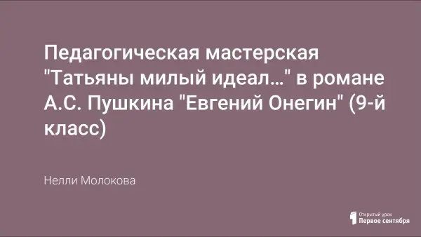 Мастерская представляет комплекс заданий, выполняя которые учащиеся 9 класса подойдут к пониманию внутреннего мира Татьяны Лариной.