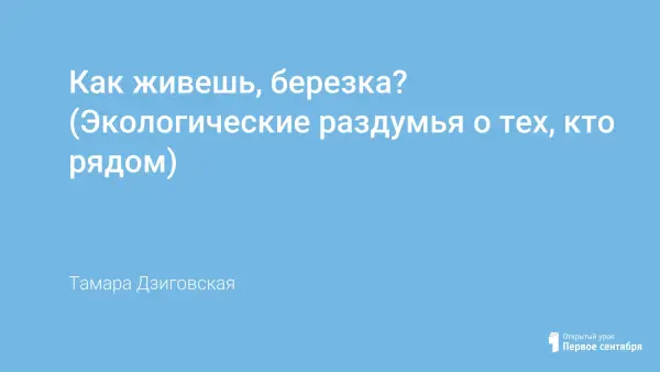 С чего начинается Родина? Может, и правда, с той самой березки, что во поле, качаясь от ветра, растет. Какое влияние оказывают экологические факторы на знакомую нам березку? Какие приспособления вырабатываются у живых организмов к условиям окружающей среды? Осознать свою причастность к миру живой природы, наблюдать, анализировать и делать логические выводы, сочинять частушки по народным приметам, верить в священные деревья, любить и беречь свой край - вот чему хочу научить на этом уроке. Если в детстве научиться быть рачительным хозяином своей земли, может, и сумеем всем миром спасти это неустойчивое экологическое равновесие.
