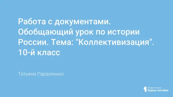 Работа с документами. Обобщающий урок по истории России. Тема: "Коллективизация". 10-й класс
