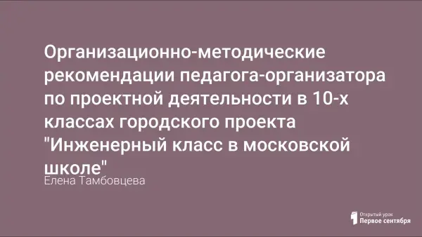 Данная работа представляет собой детальное описание опыта педагога-организатора по сопровождению обучения и проектной деятельности десятого технологического класса в вузе-партнере в рамках реализации городского проекта предпрофессионального образования «Инженерный класс в московской школе».