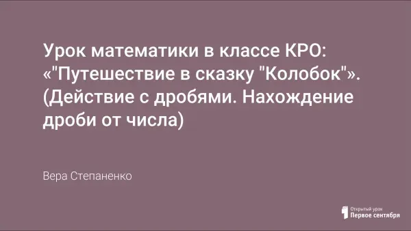 Урок проводится в виде путешествия в сказку "Колобок". Учащиеся помогают добраться Колобку к дедушке с бабушкой, выполняя с ним задания, которые задают другие персонажи сказки. Закрепляется навык выполнения действий с обыкновенными дробями.