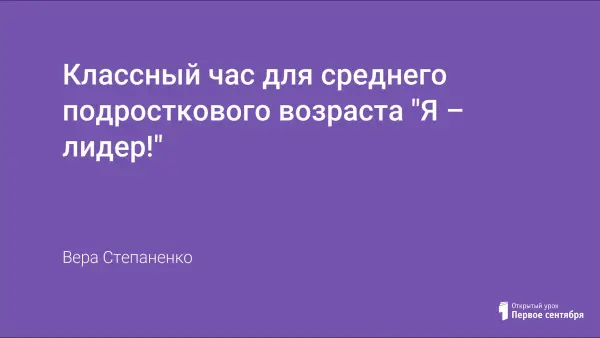 Классный час на тему «Я - лидер» создает условия для самоорганизации и организации жизнедеятельности подростка, способствующие развитию лидерского потенциала и обогащению его индивидуального опыта.