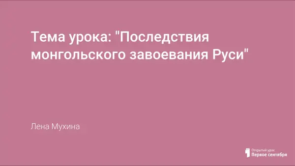 Данный урок является дополнительным в плане изучения истории Руси XII века. По учебнику Рыбакова Б.А., Преображенского А.А.(учебник по которому занимаются обучающиеся), данная тема "Монгольское завоевание" несмотря на огромные хронологические рамки (2,5 века), очень сокращена. А последствия этого завоевания значительно отразились на дальнейшей истории Руси. Поэтому, изучив глубже этот материал, учащимся будет легче и интереснее познавать, как все-таки Русь смогла освободиться от завоевателей и продолжить свое развитие.