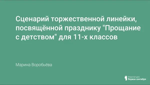 Праздник "Прощания с детством" в нашей школе стал уже традиционным для ребят 11-х классов. Он проводится в 20-х числах мая перед "Последним звонком". Это один из последних праздников, проводимых для одиннадцатиклассников. К празднику ребята готовят костюмы в виде детских нарядов, игрушки. Каждый класс придумывает название, девиз и кричалку. В этот день в школе царит веселье, и мы всегда стараемся, чтобы этот праздник был не похожим на предыдущие. Ребятам он очень нравится, этот день остаётся в их памяти как "Последний звонок и "Выпускной вечер".