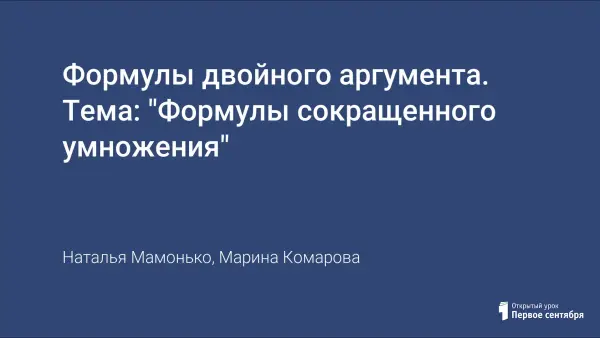 Формулы двойного аргумента. Тема: "Формулы сокращенного умножения"