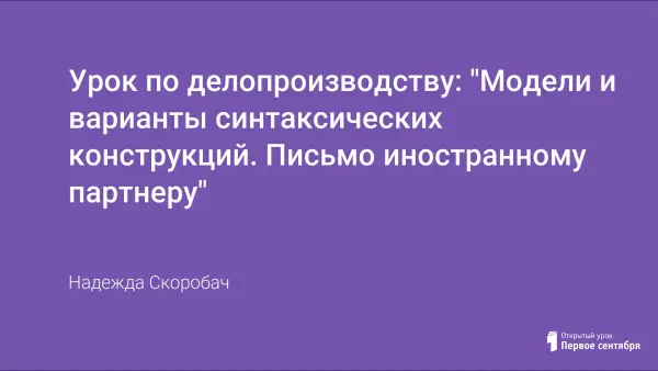 Урок по профилю секретарь-делопроизводитель предмет делопроизводство "Модели и варианты синтаксических конструкций. Письмо иностранному партнеру". Урок получения новых знаний. Формирует умения правильно составлять служебные письма и знакомит с письмом иностранному партнеру.
