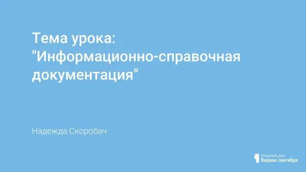 Занятие по теме «Информационно-справочная документация» носит практическую направленность. Включает в себя фронтальную теоретическую и практическую проверку изученного ранее, изучение нового материала с индивидуальной практической работой.