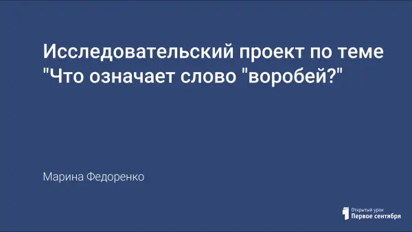 Данный исследовательский проект «Что означает слово «воробей»?» может использоваться на факультативах по русскому языку в начальных классах и в школьных научных обществах.