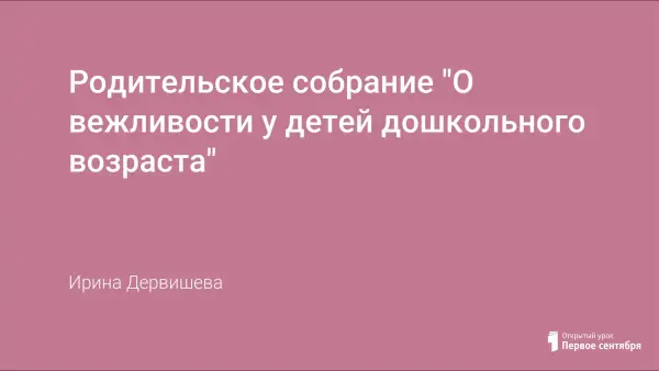 В статье представлена разработка родительского собрания, затрагивающего некоторые вопросы нравственного воспитания детей, памятки для родителей. В приложении разработки двух занятий с детьми, направленных на воспитание вежливости.