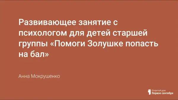 Цель занятия: создание условий для естественного психологического развития ребенка.