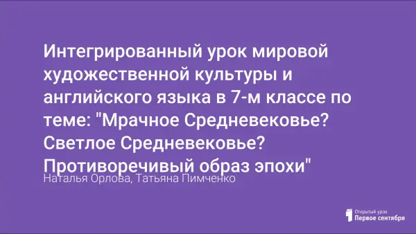 Урок разработан в рамках авторской интегрированной программы “Развитие трансцендентного сознания учащихся гимназических классов” на базе МХК и углубленного изучения английского языка.