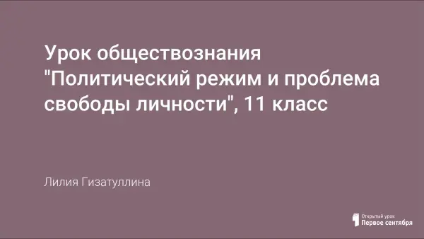 Урок обществознания "Политический режим и проблема свободы личности", 11 класс