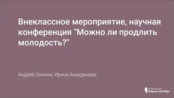 Внеклассное мероприятие, научная конференция "Можно ли продлить молодость?"