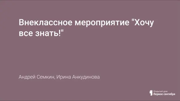 Данная статья посвящена разработке внеклассного мероприятия игры "Хочу все знать!", провидимого в рамках Недели естественных наук для учащихся 9-11-х классов.