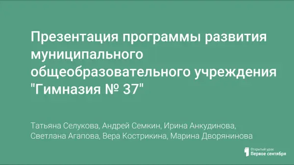 Статья посвящена презентации программы развития МОУ "Гимназия № 37" г. Екатеринбурга, включающая миссию гимназии, цель и задачи развития гимназии. Представлены направления развития гимназии.