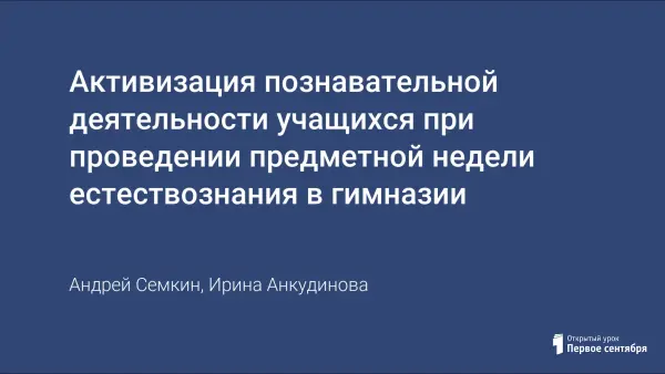 Активизация познавательной деятельности учащихся при проведении предметной недели естествознания в гимназии