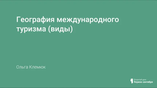 Изучение темы дает возможность узнать о видах международного туризма, рассмотреть страны лидеры по приему туристов, и основные туристические районы мира и основные направления международного туризма на современном этапе.