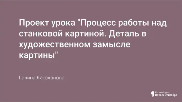 Картина — итог длительных размышлений и наблюдений художника. Какую роль и смысл играет деталь в художественном замысле картины? Это мы пытаемся понять с ребятами на уроках творчества.