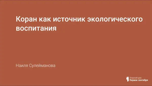 В статье рассмотриваются проблемы экологического воспитания учащихся. В качестве одного из источников такого воспитания предлагается Коран.