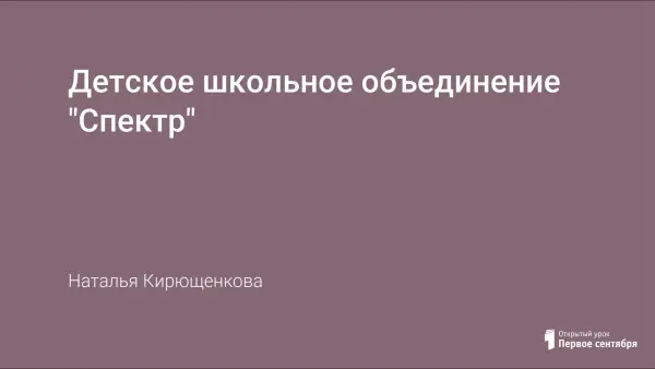 В программе деятельности детского пионерского объединения "Спектр" МОУ Шимановской средней школы Вяземского района Смоленской области указаны основные направления, их содержание и цели работы с детьми среднего и старшего школьного возраста. Данная программа поможет воспитателям в организации работы школьных детских объединений.