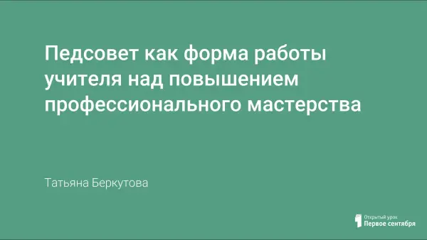 В Концепции модернизации Российского образования" на период до 2010 года среди важнейших задач рассматривается повышение профессионализма педагогов. Изменения в структуре, содержании и организации образовательного процесса подталкивают учителя искать, пробовать, реализовывать свои находки в условиях новой Школы. Одной из форм оценивания своего "Я" в развивающейся школе остаётся педагогический совет.