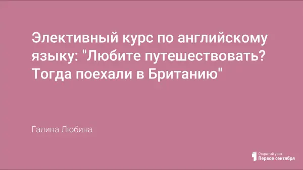 Курс рассчитан на учащихся 9-х классов общеобразовательной школы. Занятия проводятся как факультатив по одному уроку в неделю и включают в себя 17 уроков с темами. Этот курс предполагает ознакомить учащихся с повседневной жизнью Великобритании, некоторыми чертами национального характера, особенностями быта ее граждан и их традициями.