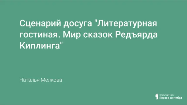 Сценарий литературного досуга, посвященный сказкам и стихам Редъярда Киплинга. Досуг проводится для детей старшего дошкольного возраста совместно с родителями.