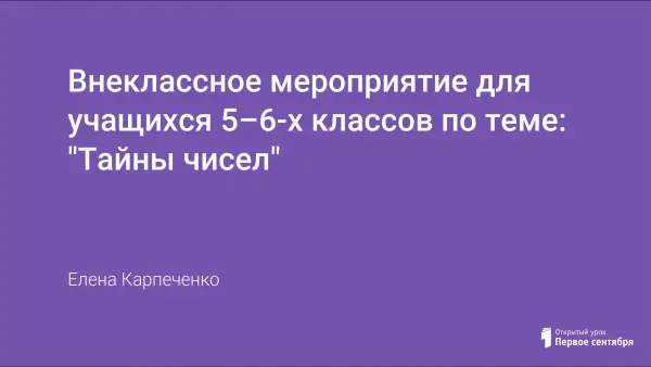 Внеклассное мероприятие по математике для учащихся 5–6-х классов "Тайны чисел".