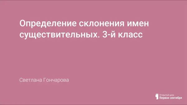 Урок русского языка в 3-м классе на совершенствование умения определять тип склонения имён существительных. Цель урока: обобщить знания о склонении имён существительных, обогатить словарный запас учащихся, продолжить работу по развитию объёма памяти.