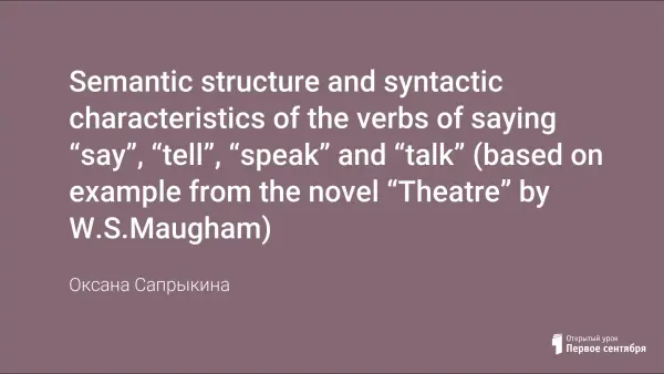 В статье речь идет о семантических структурах и синтаксических характеристиках глаголов высказывания на примере романа У.С.Моэма “Театр”.
