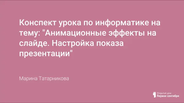 Урок знакомит учащихся с понятием анимации, обучает дополнять слайды анимацией, создавать эффекты перехода слайдов.