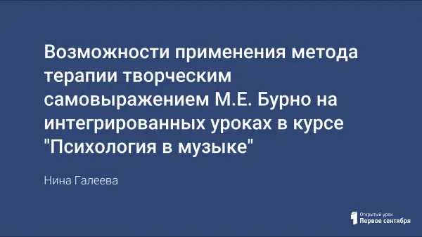 В конце 2006 учебного года в Московском казачьем кадетском корпусе им. М.А. Шолохова стартовал учебный интегрированный курс "Психология в музыке". Этот курс разработан и основан на основе психотерапевтического метода терапии творческим самовыражением М.Е. Бурно. Курс рассчитан на четыре года. Каждый курс состоит из 34–35 теоретических и практических занятий, которые проходят один раз в неделю с 5-го по 8-й классы в учебном разделе "Искусство".