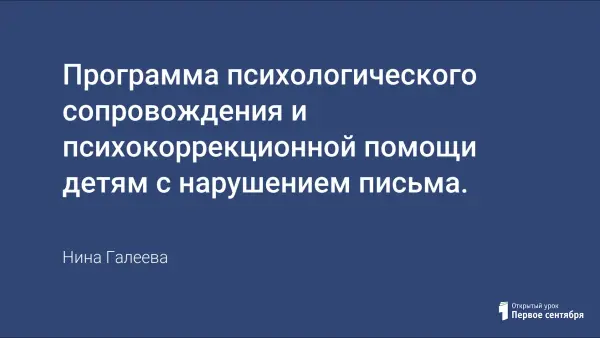 Программа психологического сопровождения и психокоррекционной помощи детям с нарушением письма. Для профилактики и исправления дефекта в программе интегрированы логопедические, психологические, психотерапевтические занятия.