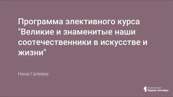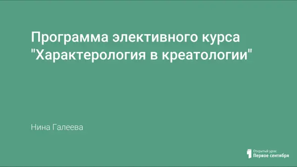 Программа для 7-х классов основана на изучении основ характерологии и креатологии как основы формирования духовно-нравственных ценностей и идеалов у современных подростков. Знакомство с художественной культурой и шедеврами искусства через призму характерных особенностей личности художников, музыкантов, поэтов, писателей, позволяет глубже познать сущность человеческого характера и представления о мире вообще.