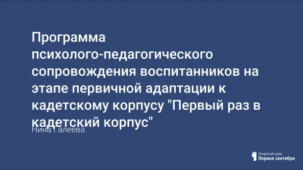 Начало обучения в кадетском корпусе – один из наиболее сложных и ответственных моментов в жизни детей как в социально-психологическом, так и в физиологическом плане. Предлагаемая программа - один из возможных вариантов сохранения психологического здоровья воспитанников на этапе первичной адаптации к кадетскому корпусу.
