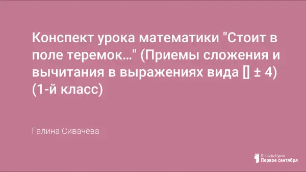Урок математики в 1-м классе построен в нетрадиционной форме. Дети вместе с мышонком отправляются в путешествие и попадают в сказку «Теремок», где их ждут увлекательные математические приключения. В ходе урока первоклассники вместе с игрушками учатся прибавлять и вычитать число 4, решать задачи, выполнять задания на развитие внимания, смекалки и логического мышления.