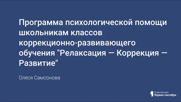 Разработанная мною программа называется "Релаксация-Корекция-Развитие" - это