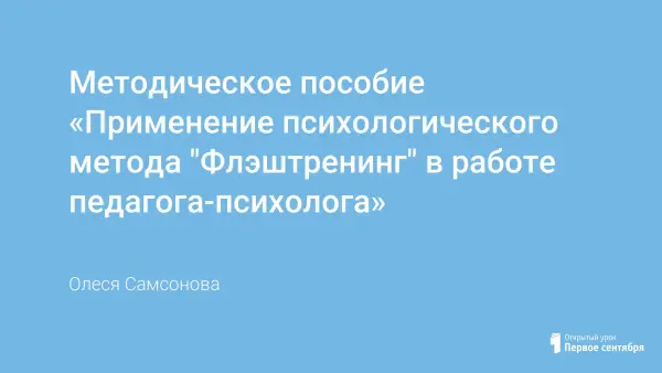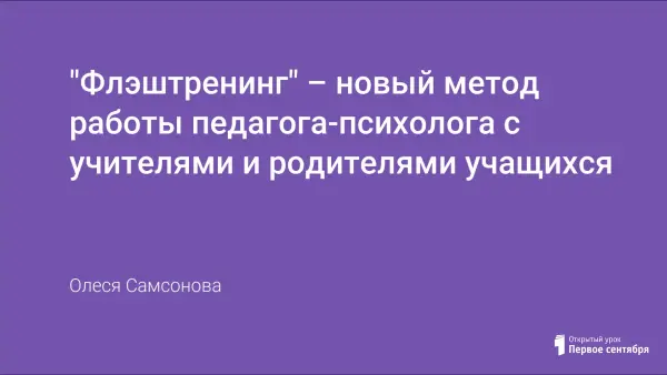 Разработанный мною психологический метод "Флэштренинг" посвящен одной из наименее затронутых проблем в методике работы педагога-психолога с учителями школ и родителями учащихся.