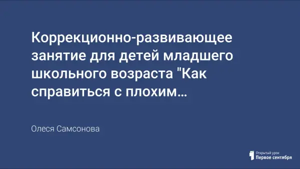 Разрабатывая цикл коррекционно-развивающих занятий "Формирование эмоциональной стабильности и положительной самооценки у детей младшего школьного возраста", я продумывала их с учётом того, чтобы каждое занятие могло проводиться автономно. В основу цикла занятий легли представления об особенностях развития эмоциональной сферы детей начальных классов. Главный акцент сделан на работу с детьми, имеющими высокий уровень тревожности, неуверенными в себе, с неустойчивой самооценкой. Занятия рассчитаны на групповую и подгрупповую формы работы. Представленное занятие "Как справиться с плохим настроением" – одно из цикла.